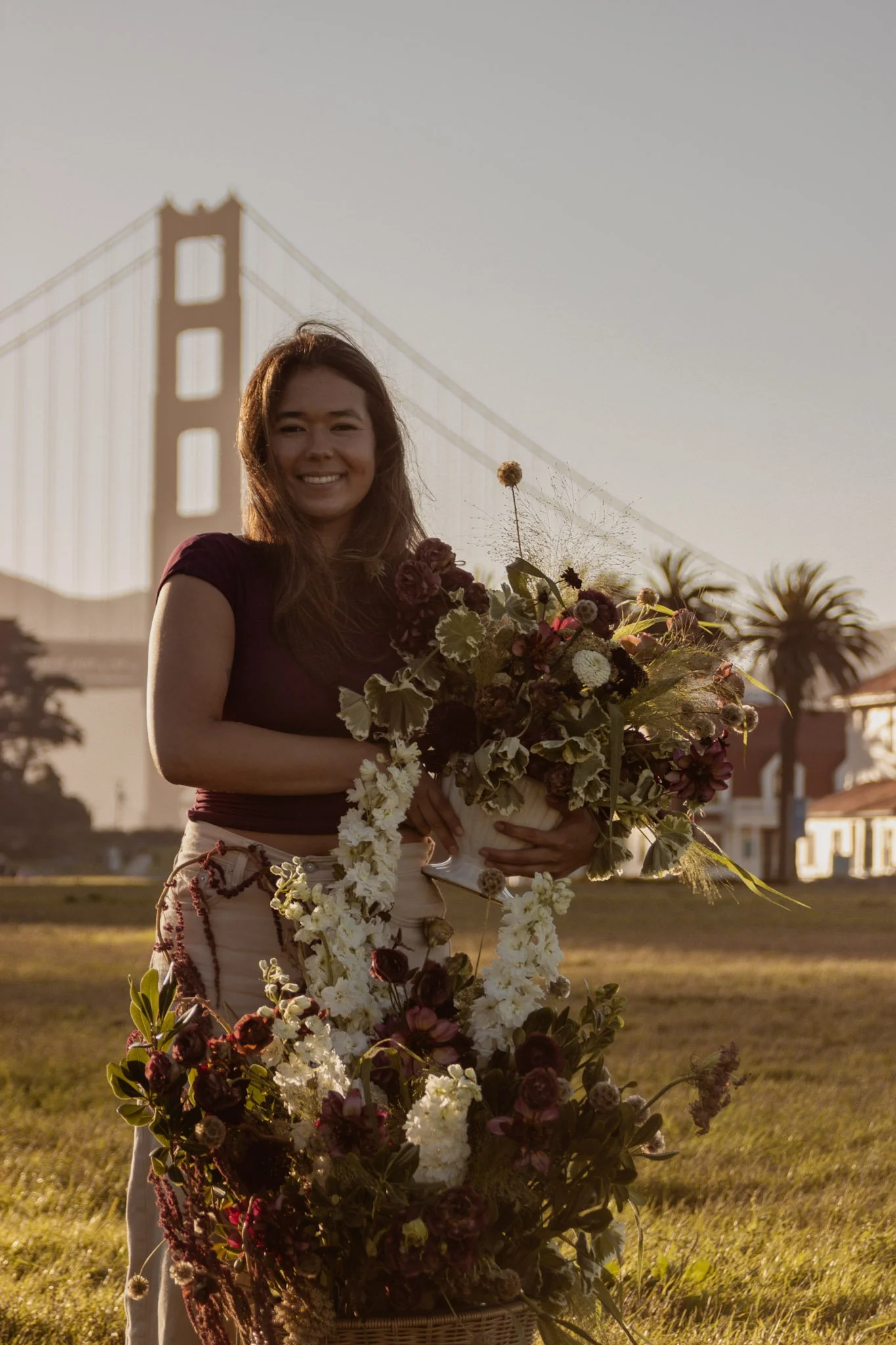 These days, I spend a lot of time freelancing with different floral designers throughout the Bay Area, working on all kinds of awesome projects and installations. I also take on special orders and commissions, and I love doing weekly flower drop-offs at local small businesses — bringing fresh, seasonal flowers into spaces that serve our community.