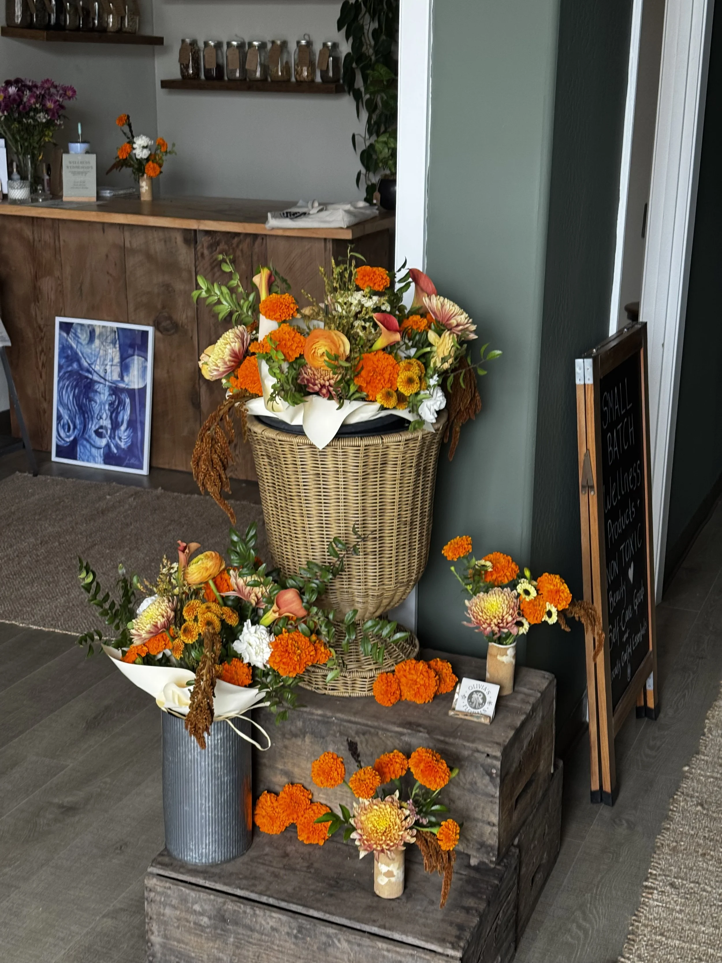 weekly bouquets available fri/sat/sun @ Thistle & Tonic special events and more! Byrd Ceramics bud vase collab installs city hall wedding bouquet coming soon... holiday centerpieces